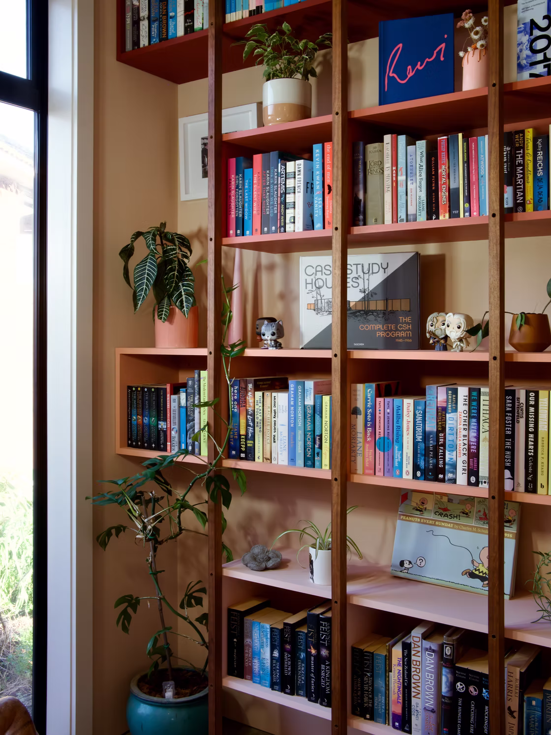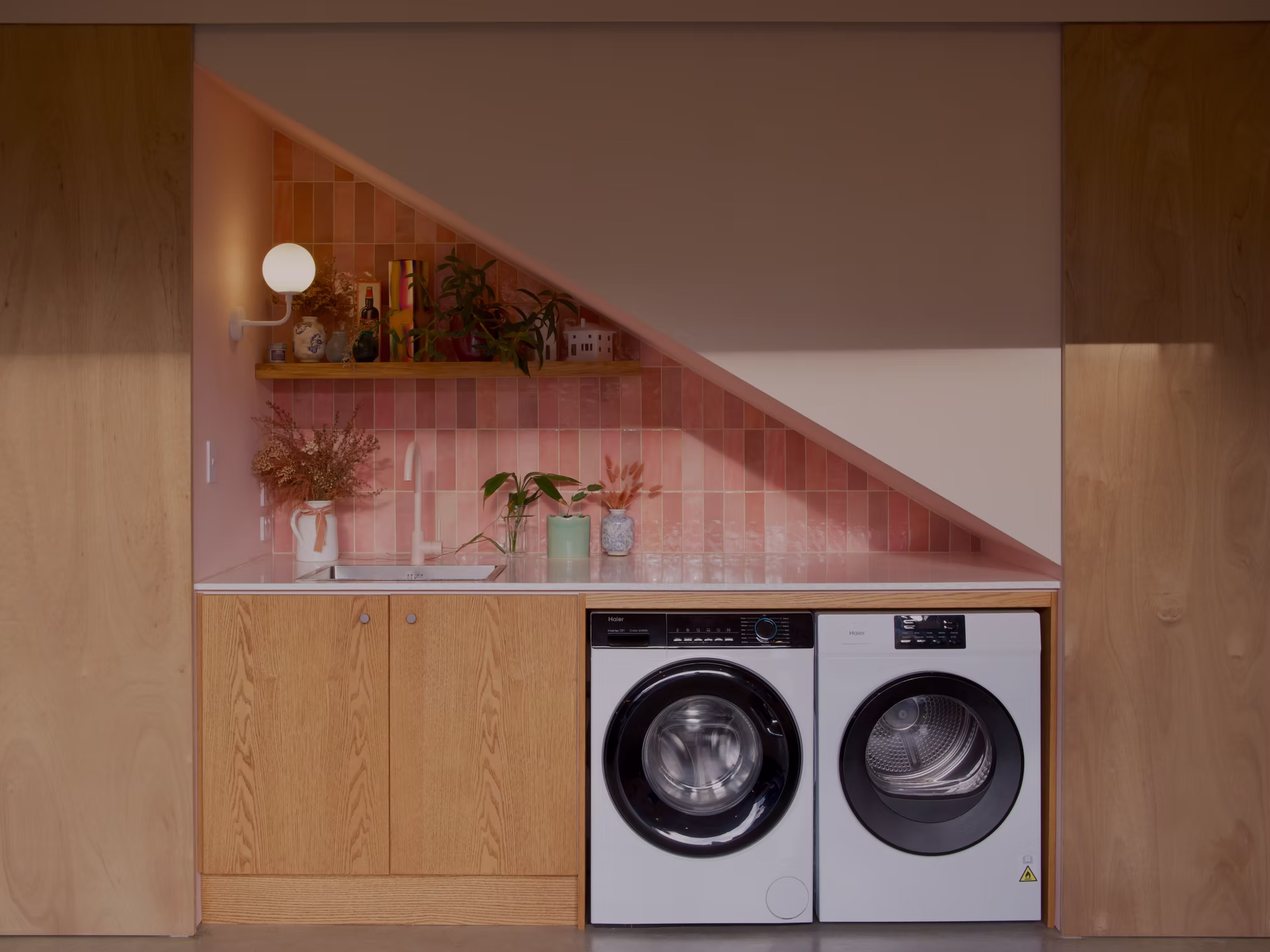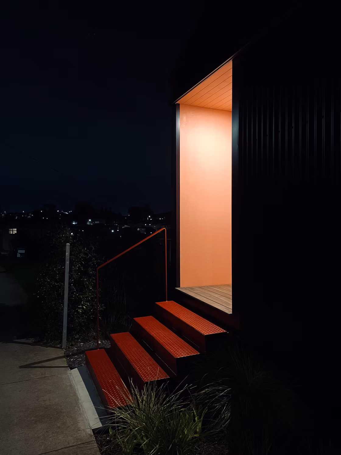 Led by our favourite colour consultant, the interior spaces are brought to life through layered tones of orange, pink, and deep green. It is a joyful and beautiful blend of mid-century meets Japanese sensibility boxed within durable and low maintenance kiwi Coloursteel. Recycled Critical CleanStone materials and extensive DIY tiling bring texture, conscience and love to the interior.